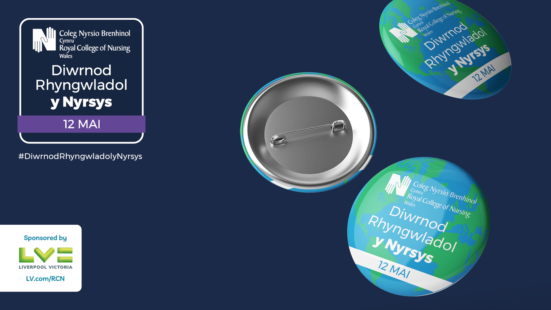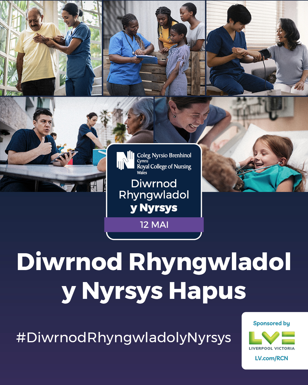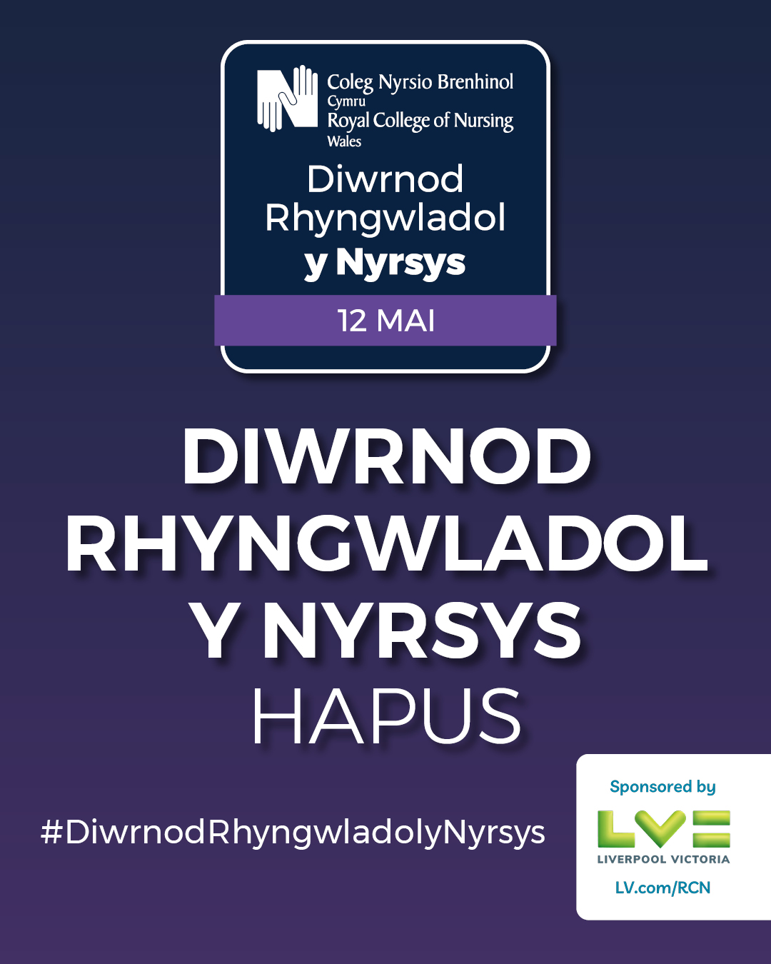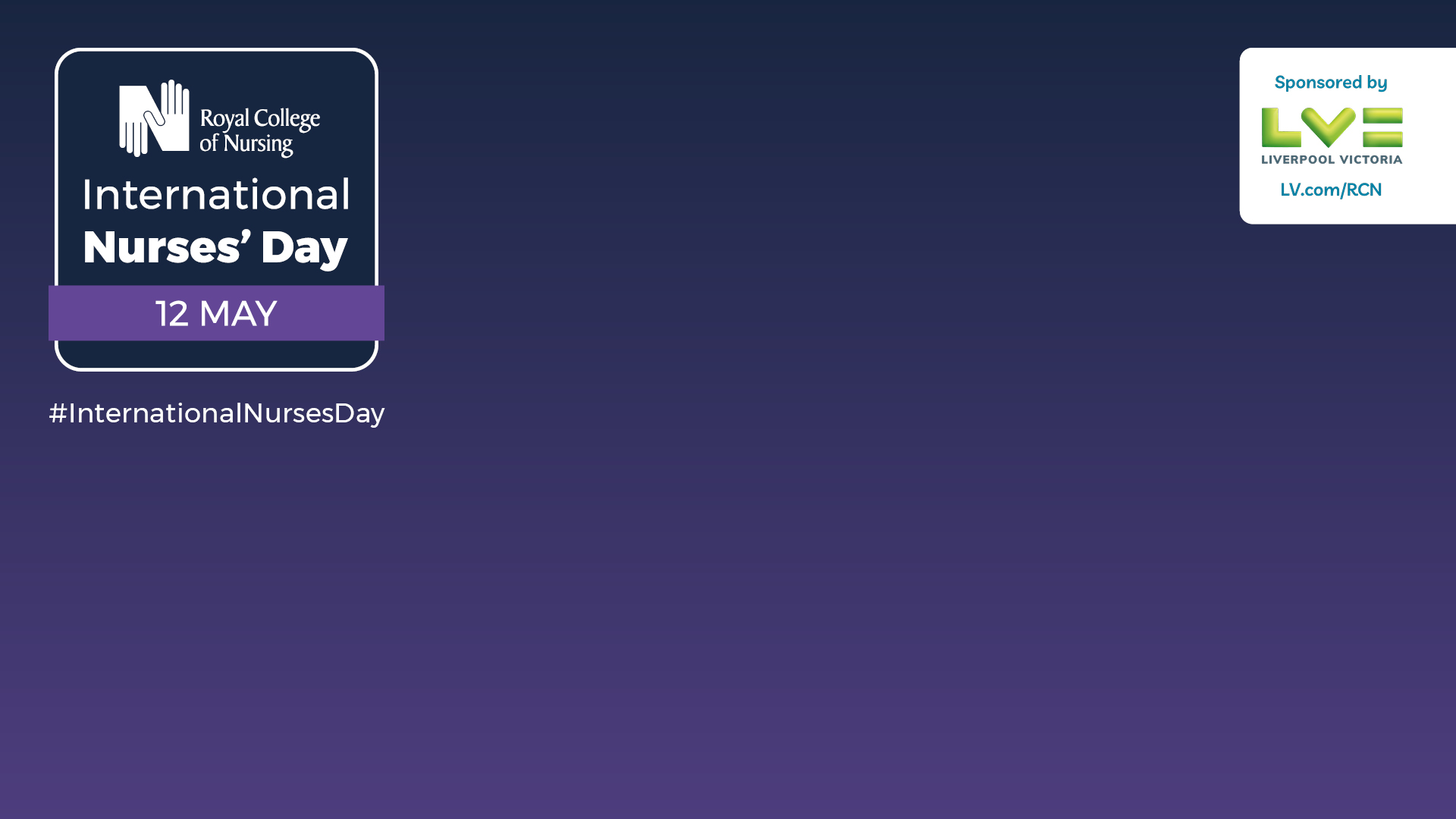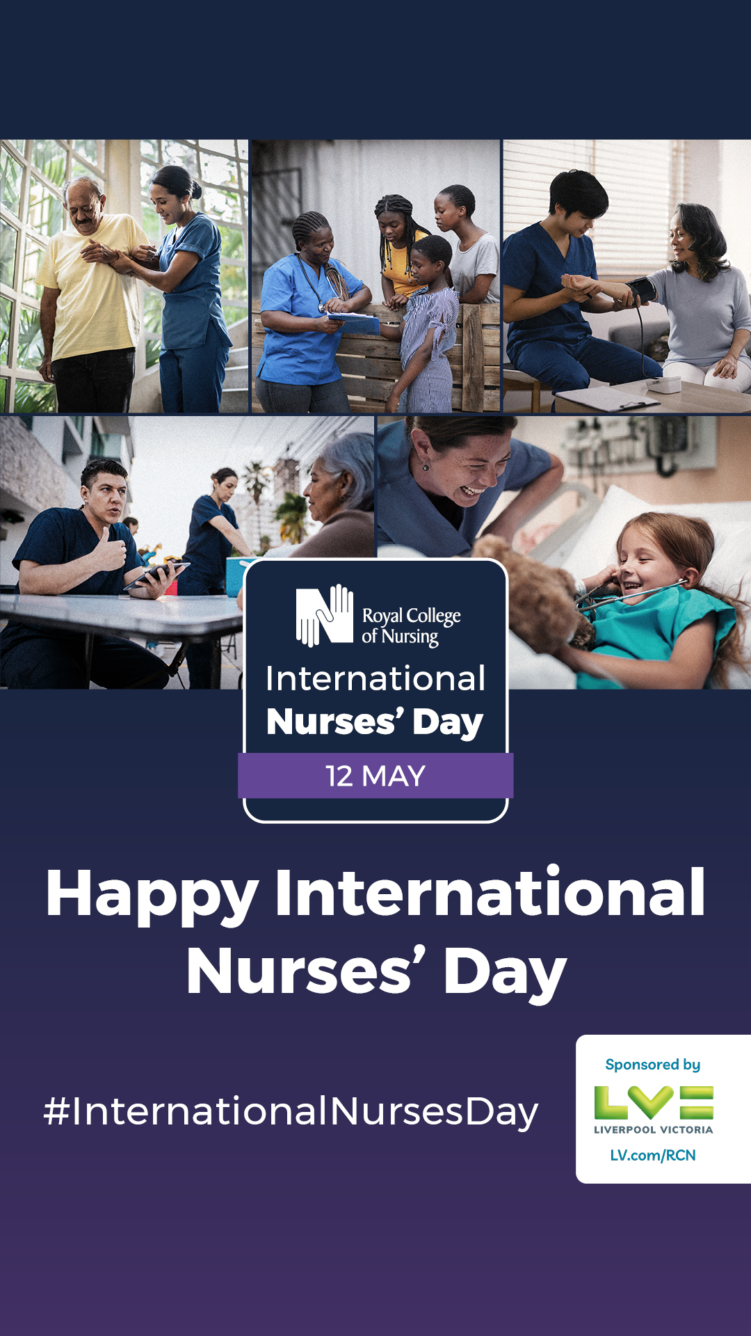 Graphic for International Nurses’ Day on 12 May, featuring the Royal College of Nursing logo and sponsored by LV= (Liverpool Victoria).
