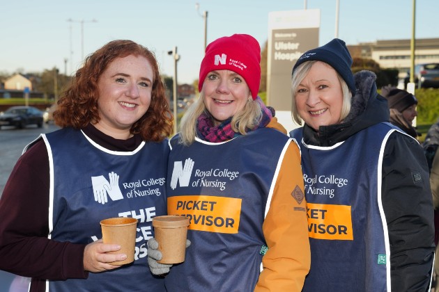 Picket supervisors keeping their hands warm and smiles firm throughout the chilly day in Northern Ireland.