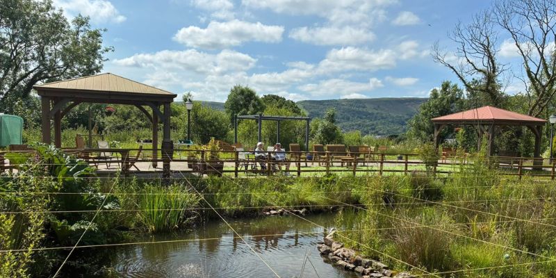 Debbie and the care home’s wellbeing manager, Wendy Parker, led the project to create the Park at Ysguborwen “to enhance the external lived experiences of their residents. Having a glorious outdoor environment, surrounded by trees and woodland, gives the perfect space to either play boules or skittles, take a woodland walk or just to sit and listen to the birds,” Debbie says. “We have fountains in the pond area as well, which enhances the sensory experience.”