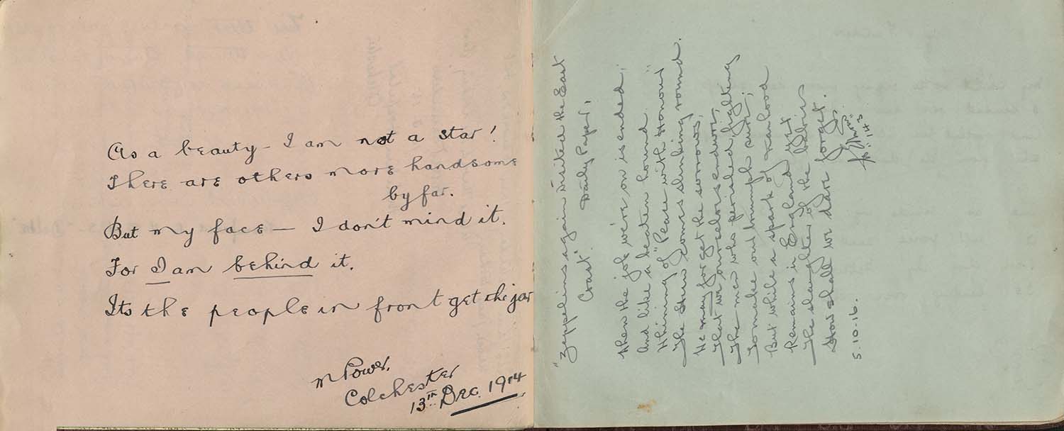 A few months later, the First World War started and she was transferred to Colchester Military Hospital. Here she collected a few entries in her scrapbook from colleagues and patients.